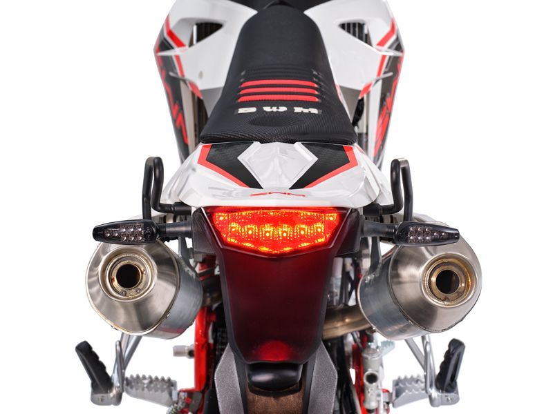 Le monocylindre d’un demi-litre refroidi par liquide assure que le vélo suit parfaitement vos commandes. Les suspensions avant et arrière Kayaba ainsi que les pneus larges assurent un contact optimal avec la route et les six vitesses peuvent être actionnées sans effort.